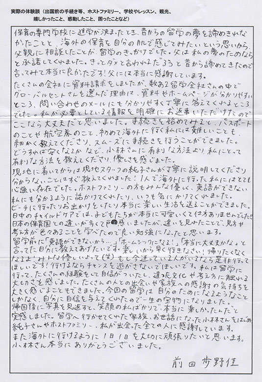 前田さんの初めてのホームステイで、オーストラリア(シドニー)での ホームステイ はどんな体験になったのか?